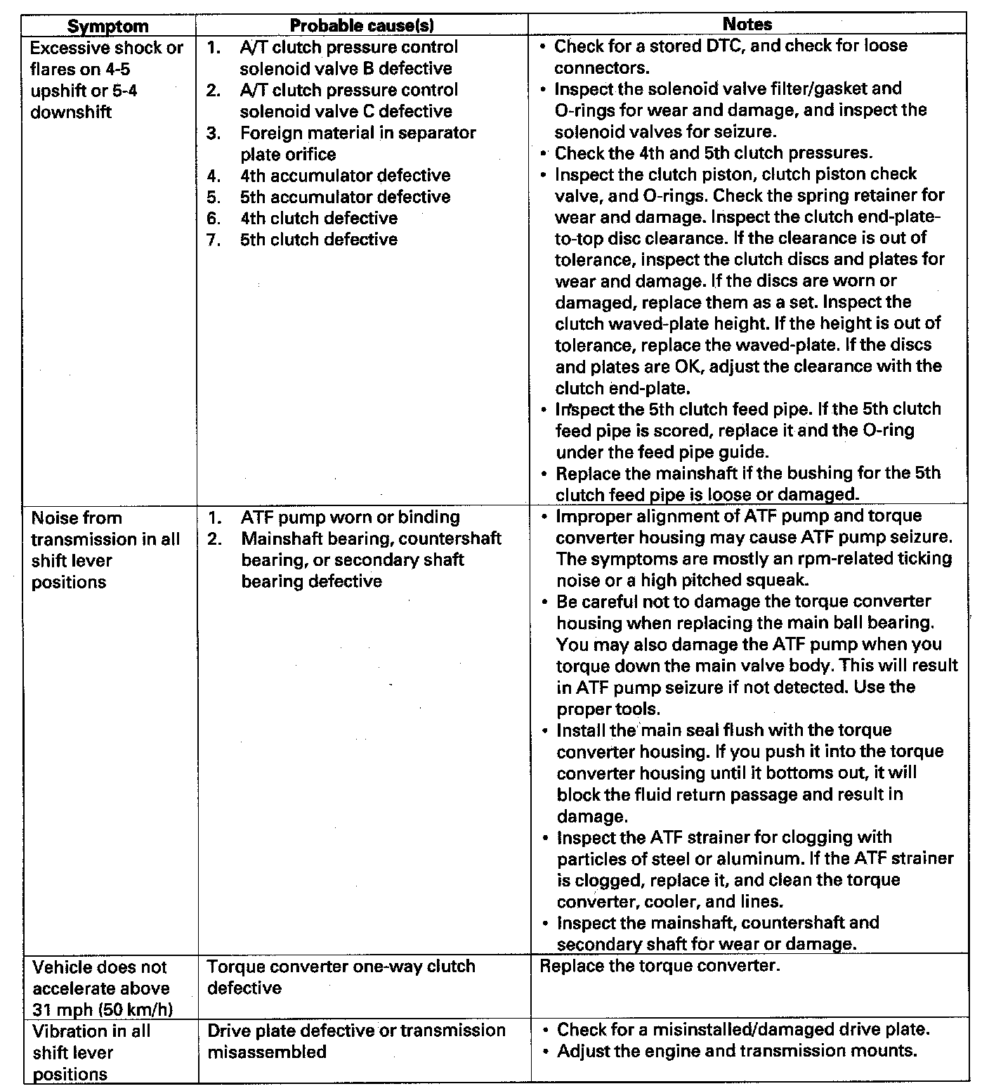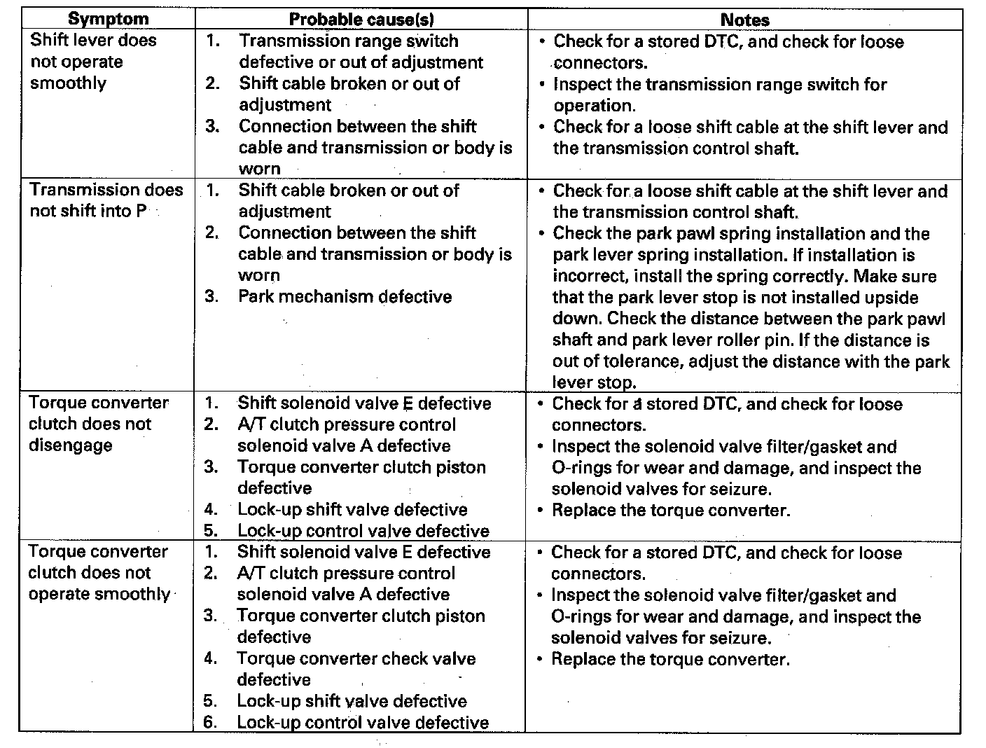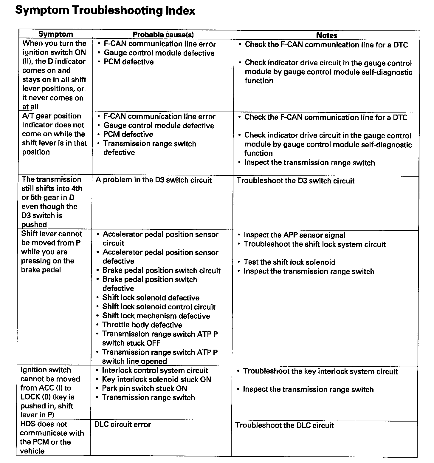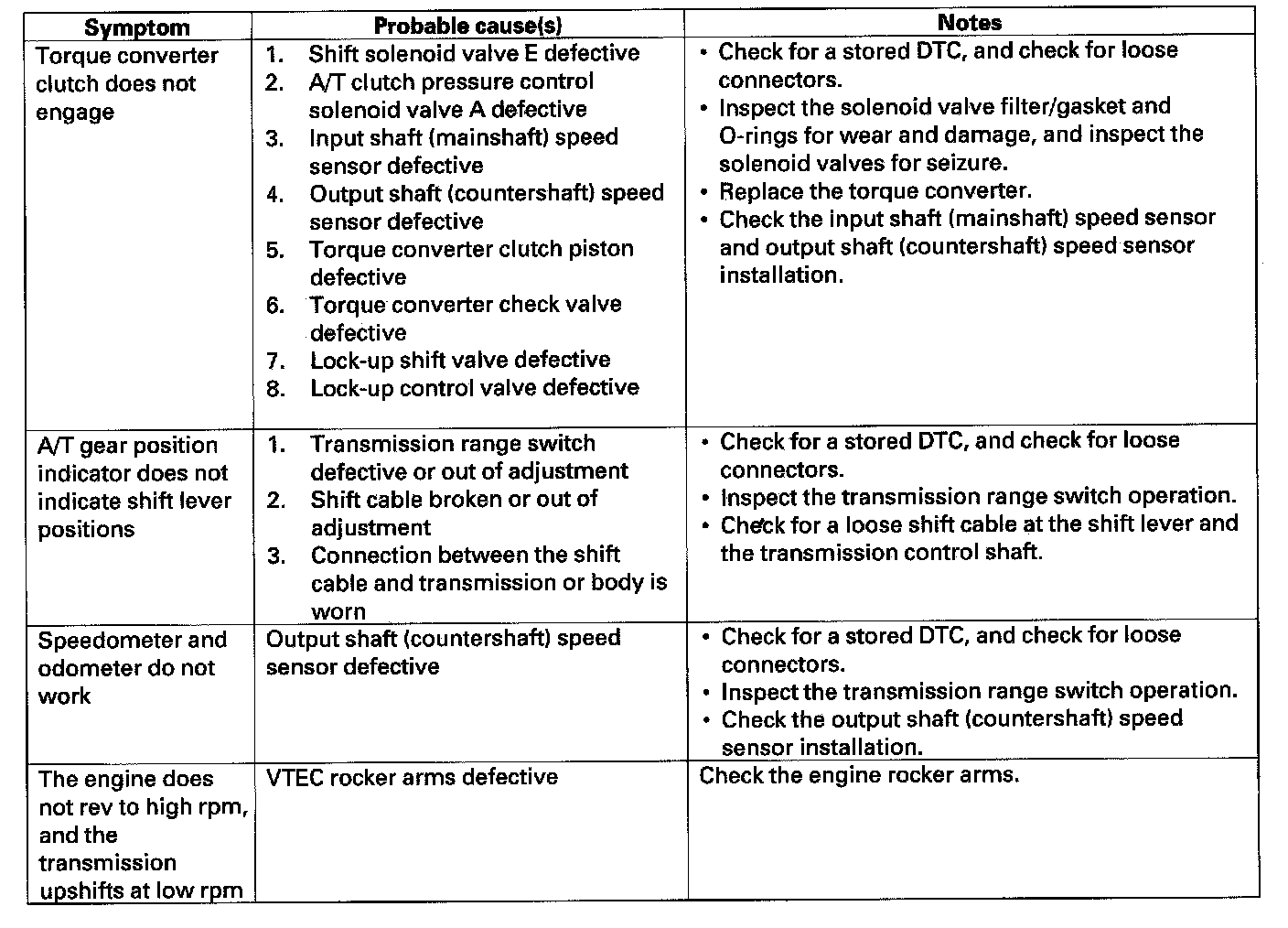Home >> Honda >> 2007 >> Element 2WD L4-2.4L >> Repair and Diagnosis >> Powertrain Management >> Transmission Control Systems >> Testing and Inspection >> Symptom Related Diagnostic Procedures >> Symptom Troubleshooting Index
