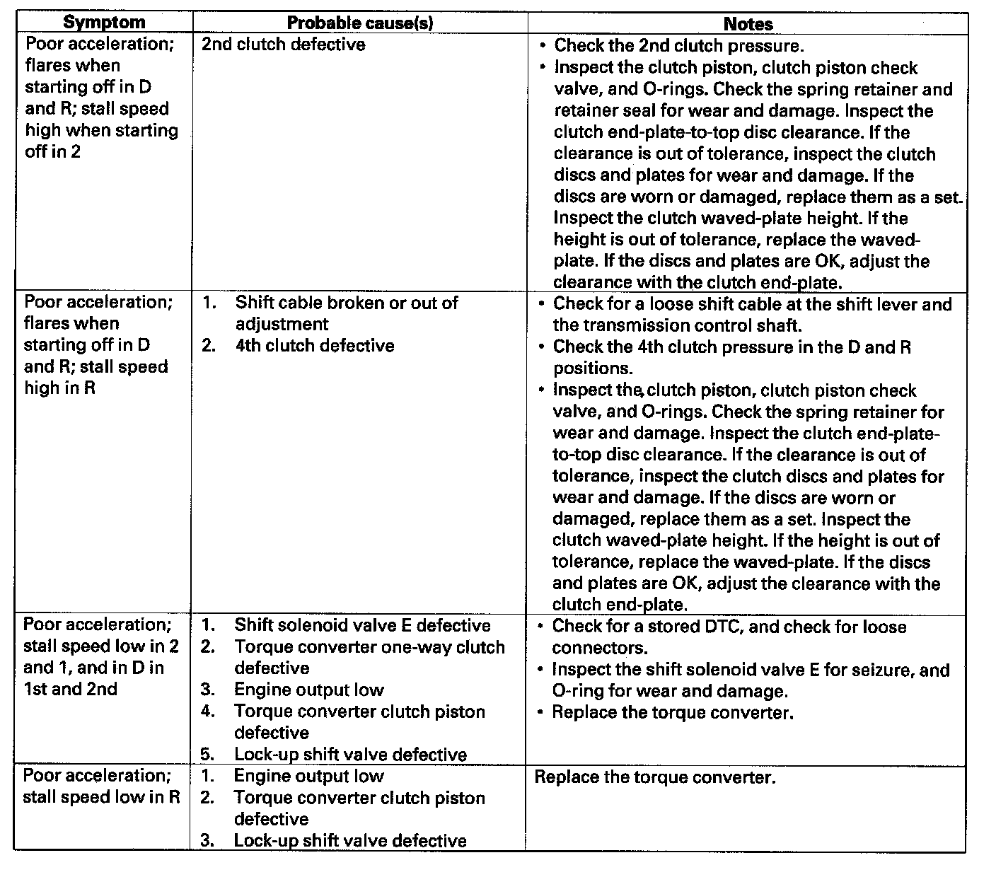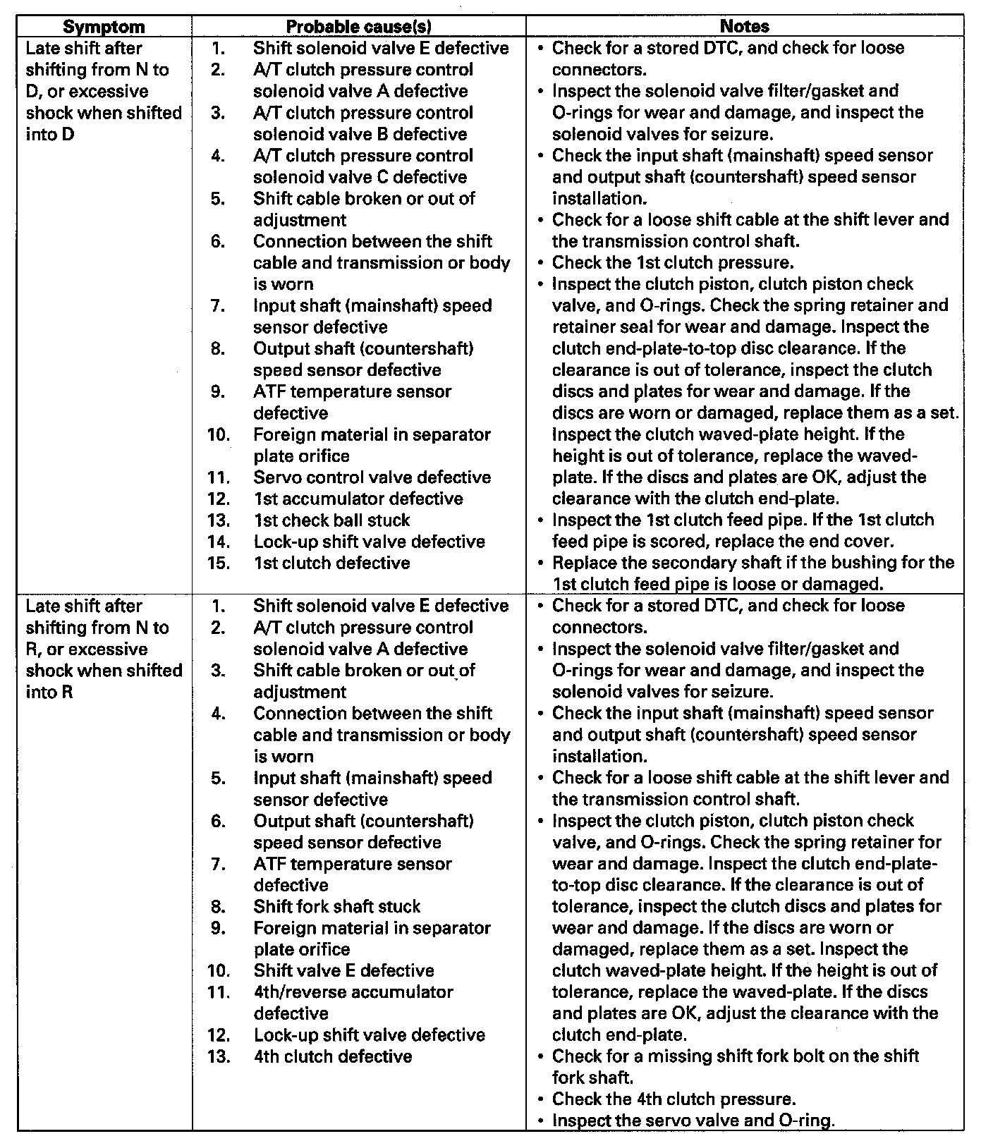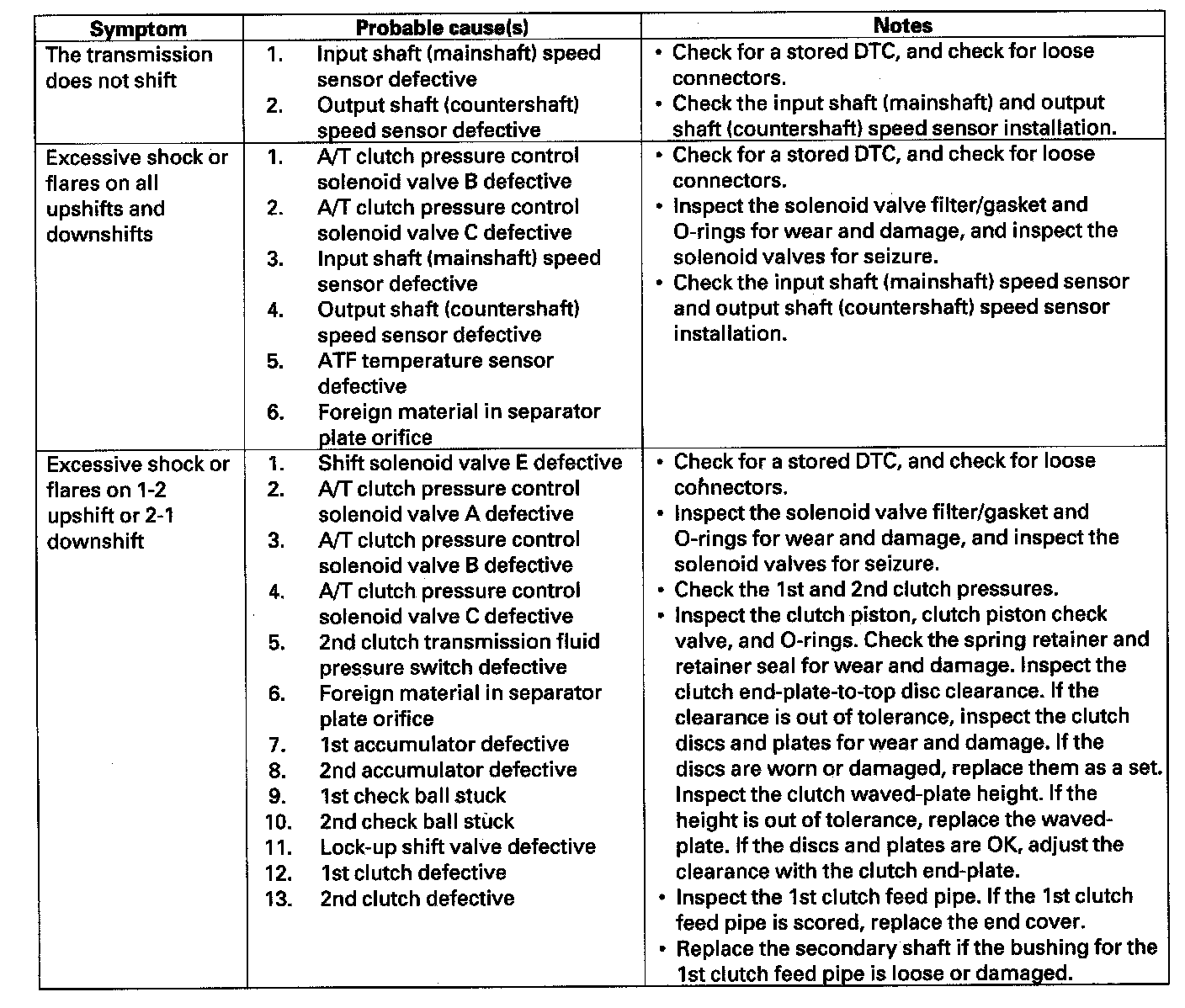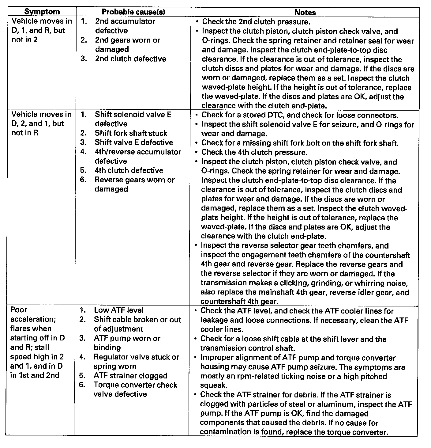 Home >> Honda >> 2007 >> Element 2WD L4-2.4L >> Repair and Diagnosis >> Powertrain Management >> Transmission Control Systems >> Testing and Inspection >> Symptom Related Diagnostic Procedures >> Symptom Troubleshooting Index
