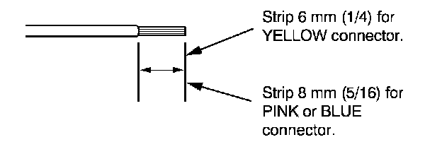 7. If you are using a yellow splice connector, strip about 6 mm (1/4 inch) of insulation off the ends of both wires. If you are using a pink or blue splice connector, strip off about 8 mm (5/16 inch) of insulation.