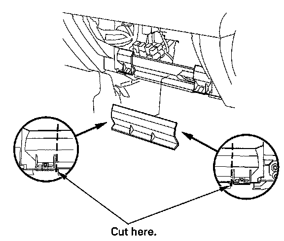 9. Cut the plastic cross brace in the glove box opening with diagonal cutters in the area shown, and discard it.