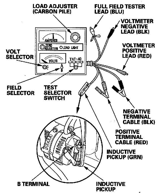 10. Apply a load with the VAT-40 until the battery voltage drops within 12-13.5 V.