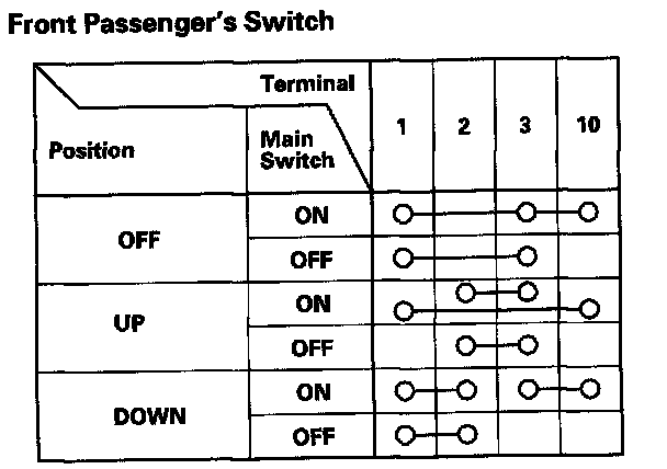 The driver's switch is combined with the control unit so you cannot isolate the switch to test it. Instead, do the master switch input test. If the tests are normal, the driver's switch must be faulty.