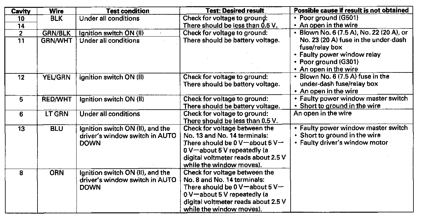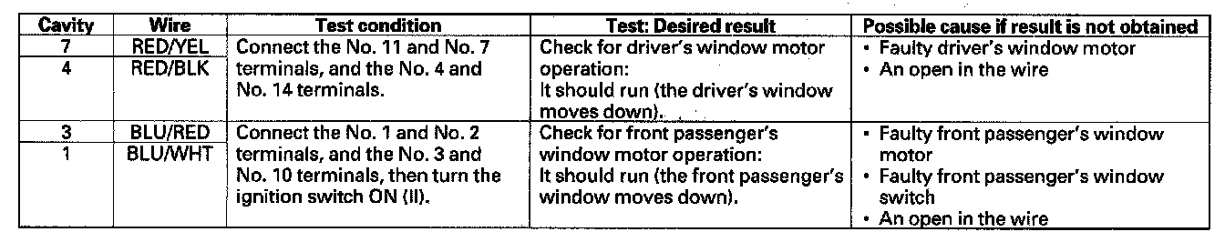 Master Switch Input TestNOTE: The power window control unit is built into the power window master switch, and it only controls the driver's window operations.