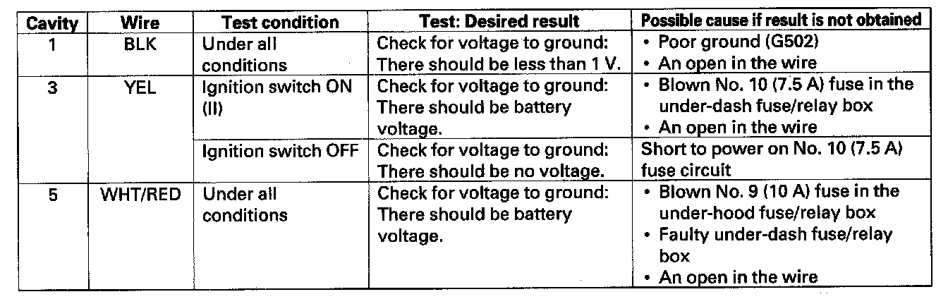 4. Reconnect the connector, and make these input tests at the connector.