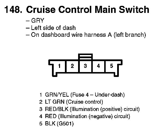 148. Cruise Control Main Switch: