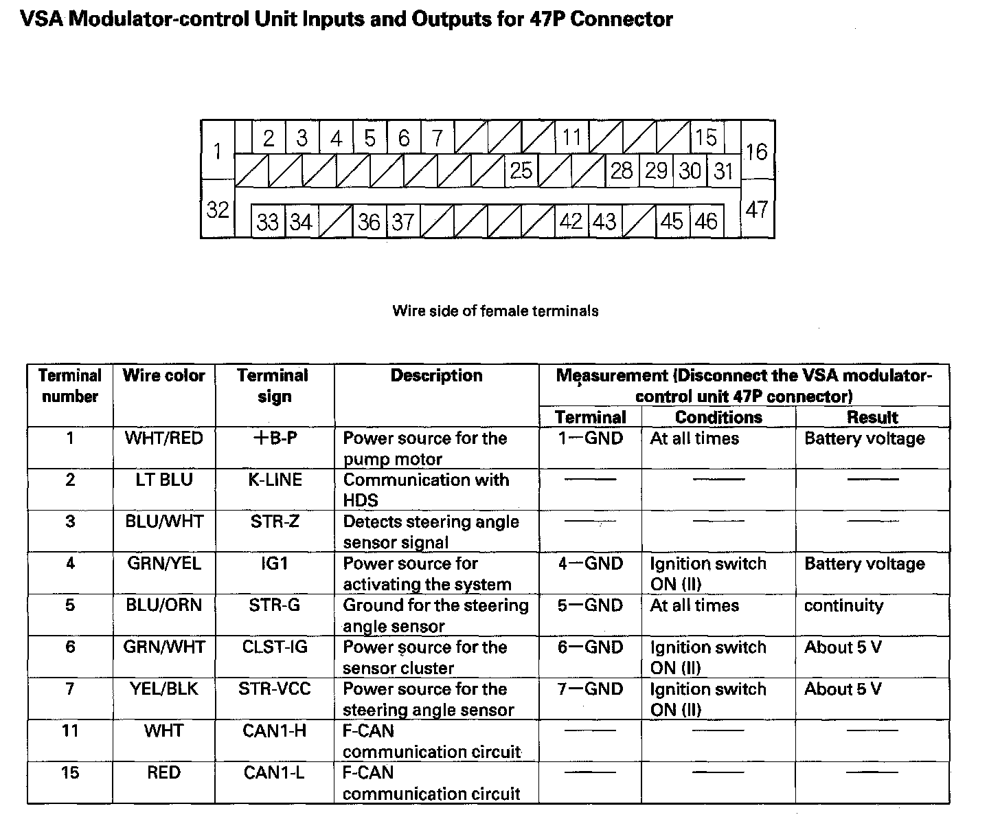 VSA Modulator-control Unit Inputs and Outputs for 47P Connector (Part 1):