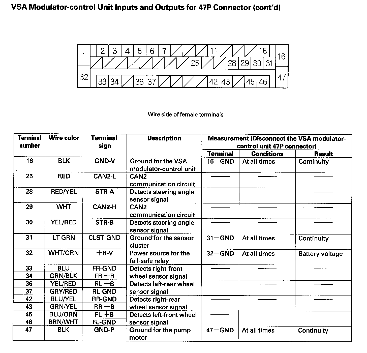 VSA Modulator-control Unit Inputs and Outputs for 47P Connector (Part 2):