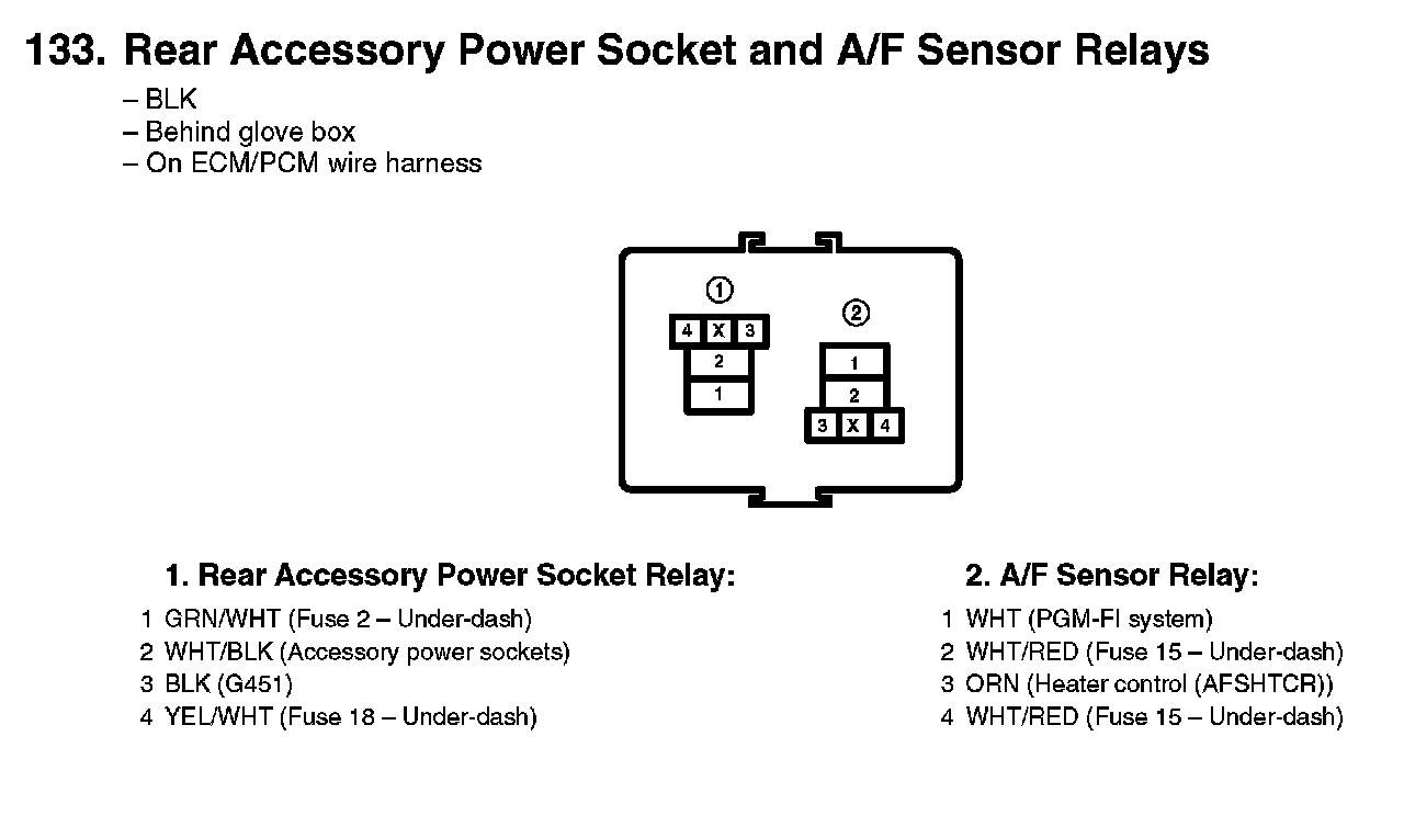 133. Rear Accessory Power Socket And A/F Sensor Relays: