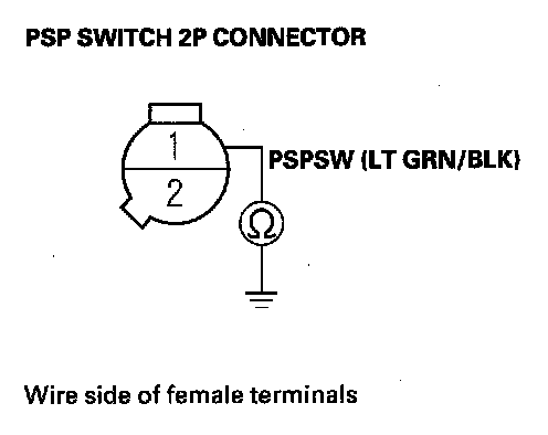 13. Check for continuity between PSP switch 2P connector terminal No. 1 and body ground.
