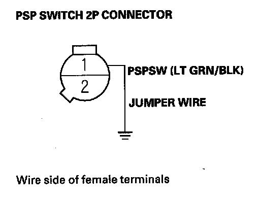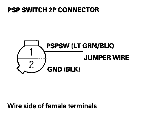 19. Remove the jumper wire from the PSP switch 2P connector.