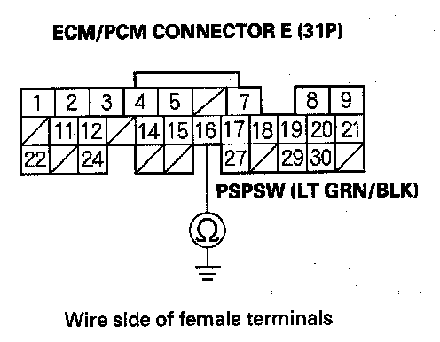Home >> Honda >> 2007 >> Element 4WD L4-2.4L >> Repair and Diagnosis >> Powertrain Management >> Computers and Control Systems >> Testing and Inspection >> Component Tests and General Diagnostics >> PSP Switch Signal Circuit Troubleshooting