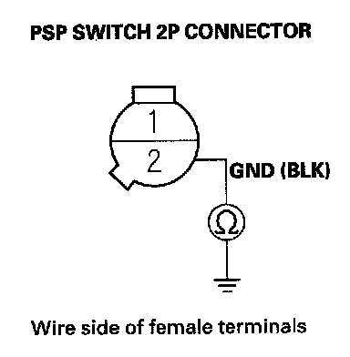 24. Check for continuity between PSP switch 2P connector terminal No. 2 and body ground.