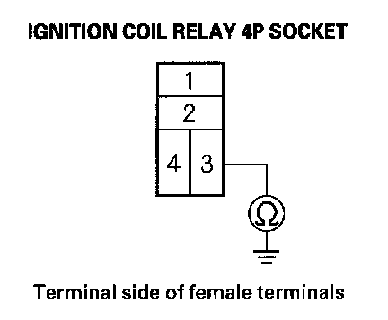 10. Check for continuity between ignition coil relay 4P socket terminal No. 3 and body ground.