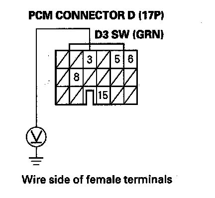 Home >> Honda >> 2007 >> Element 4WD L4-2.4L >> Repair and Diagnosis >> Powertrain Management >> Transmission Control Systems >> Testing and Inspection >> Component Tests and General Diagnostics >> D3 Switch Circuit Troubleshooting