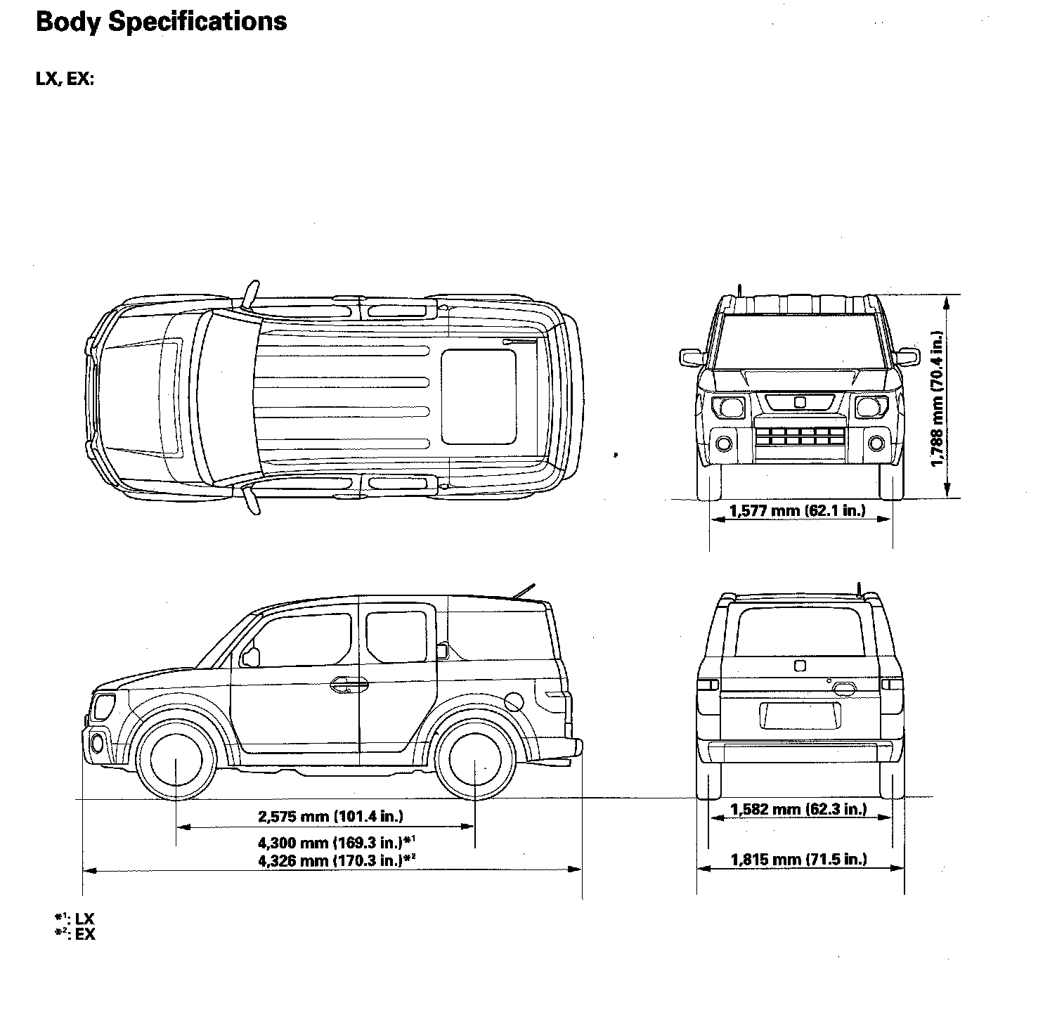 Body Specifications (LX, EX):