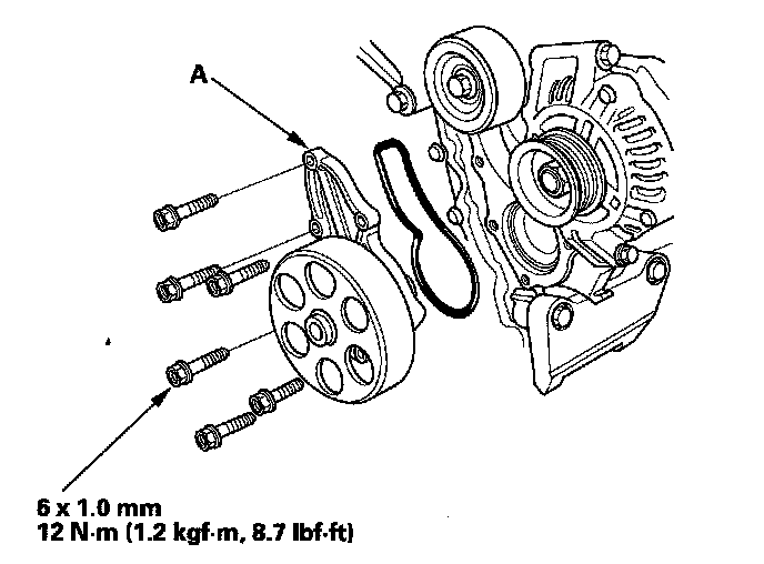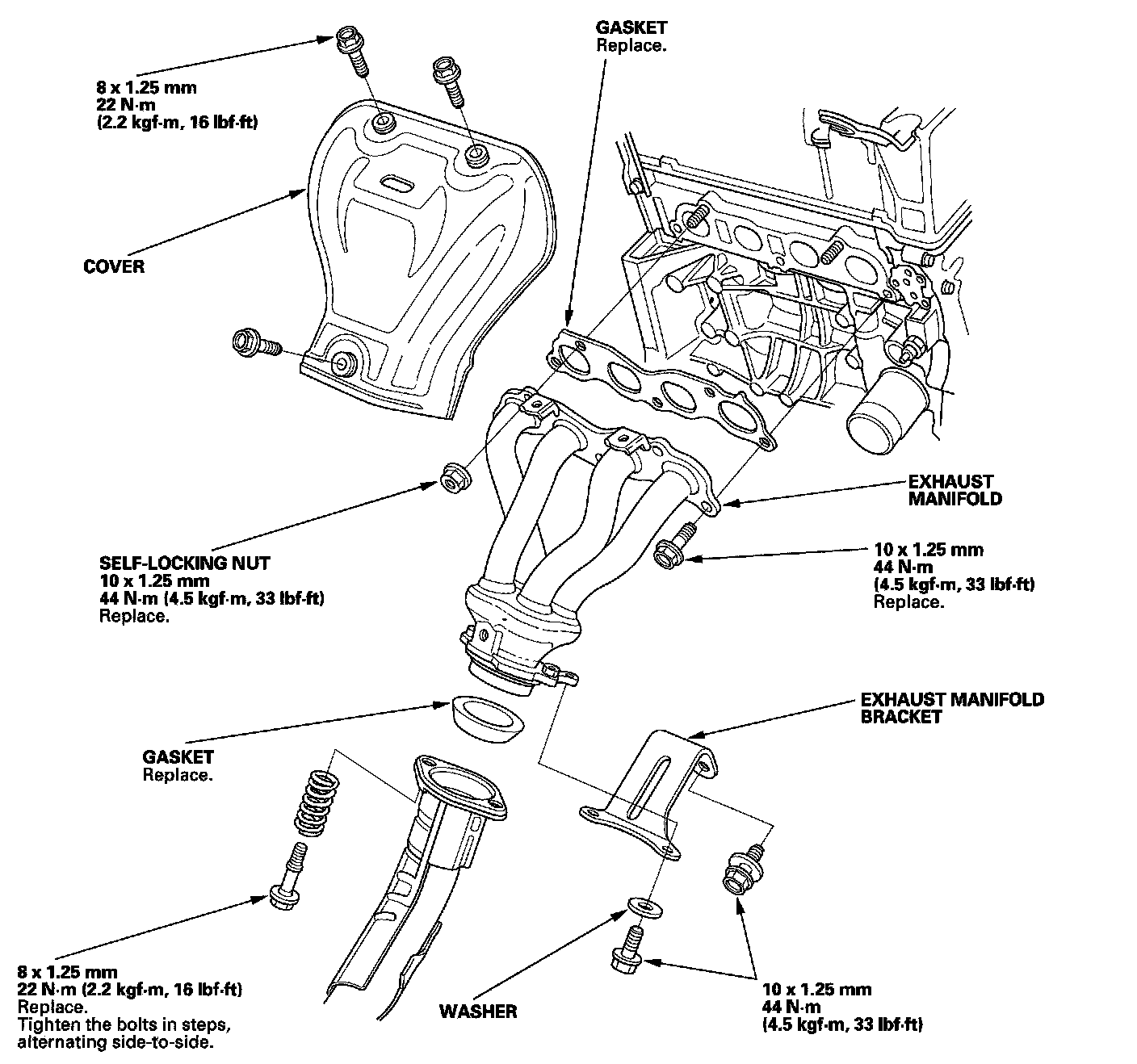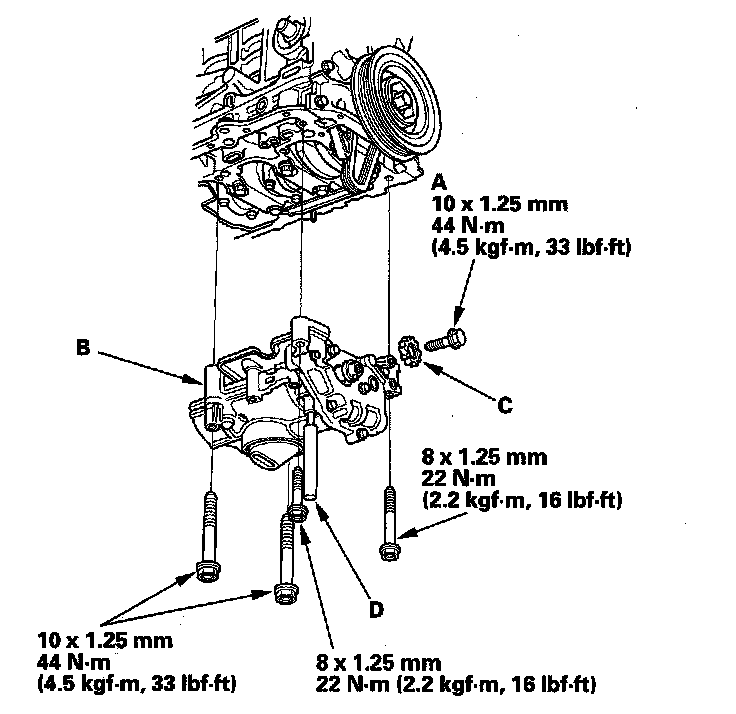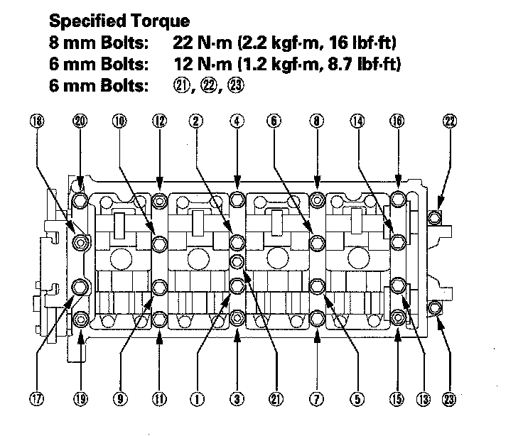 Tighten the 8 mm bolts in sequence 22 Nm (2.2 kgf-m, 16 lbf-ft).