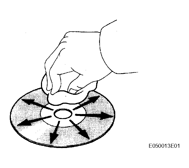 - If the disc gets dirty, clean the disc by wiping the surface from the center to the outside, in a radial direction, with a soft cloth as shown in Fig 1.