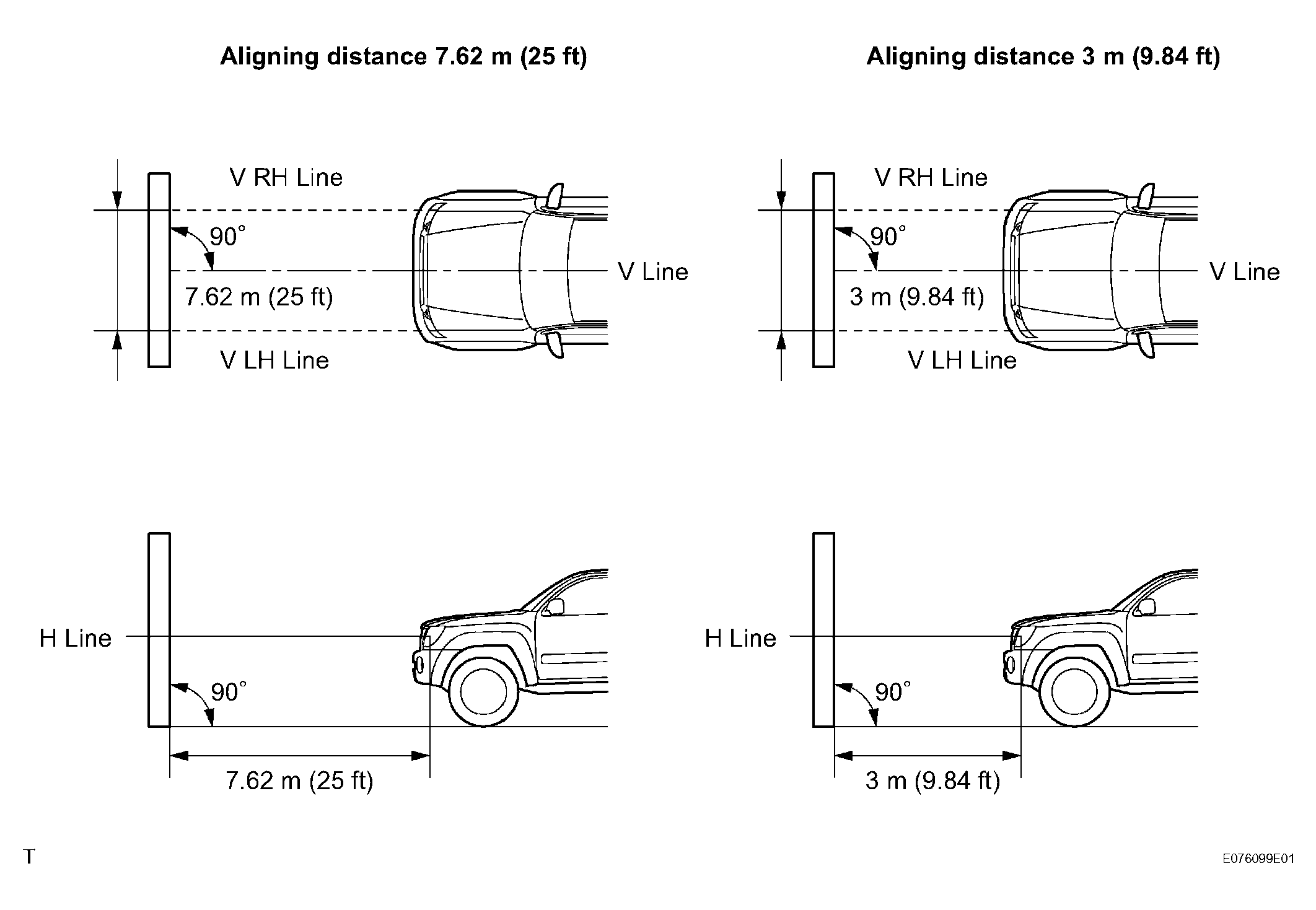 - Keep a 7.62 m (25 ft) distance between the center of the headlight bulb and the wall.