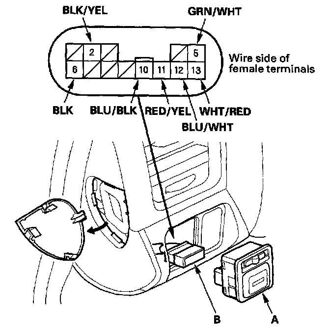2. Disconnect the 13P connector (B) from the switch.