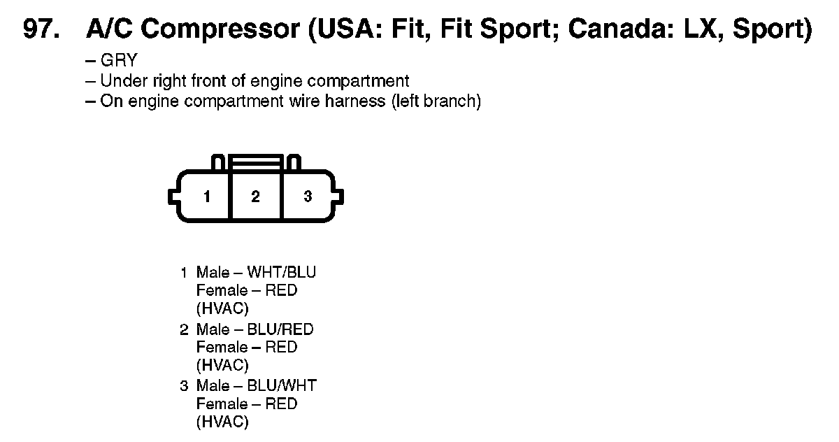 97. A/C Compressor (USA: Fit, Fit Sport; Canada: LX, Sport):