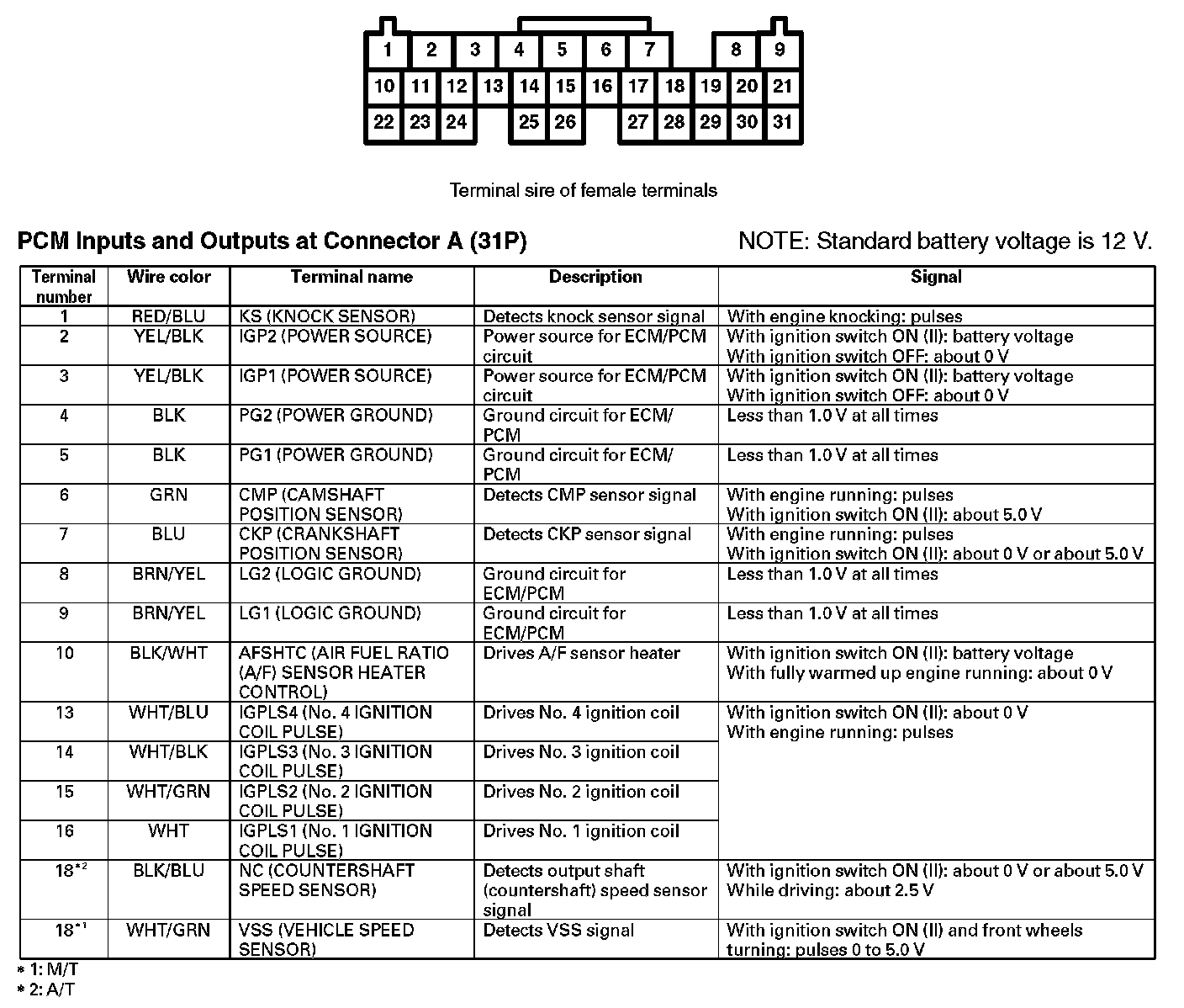 PCM Inputs And Outputs At Connector A (31P) (Part 1):