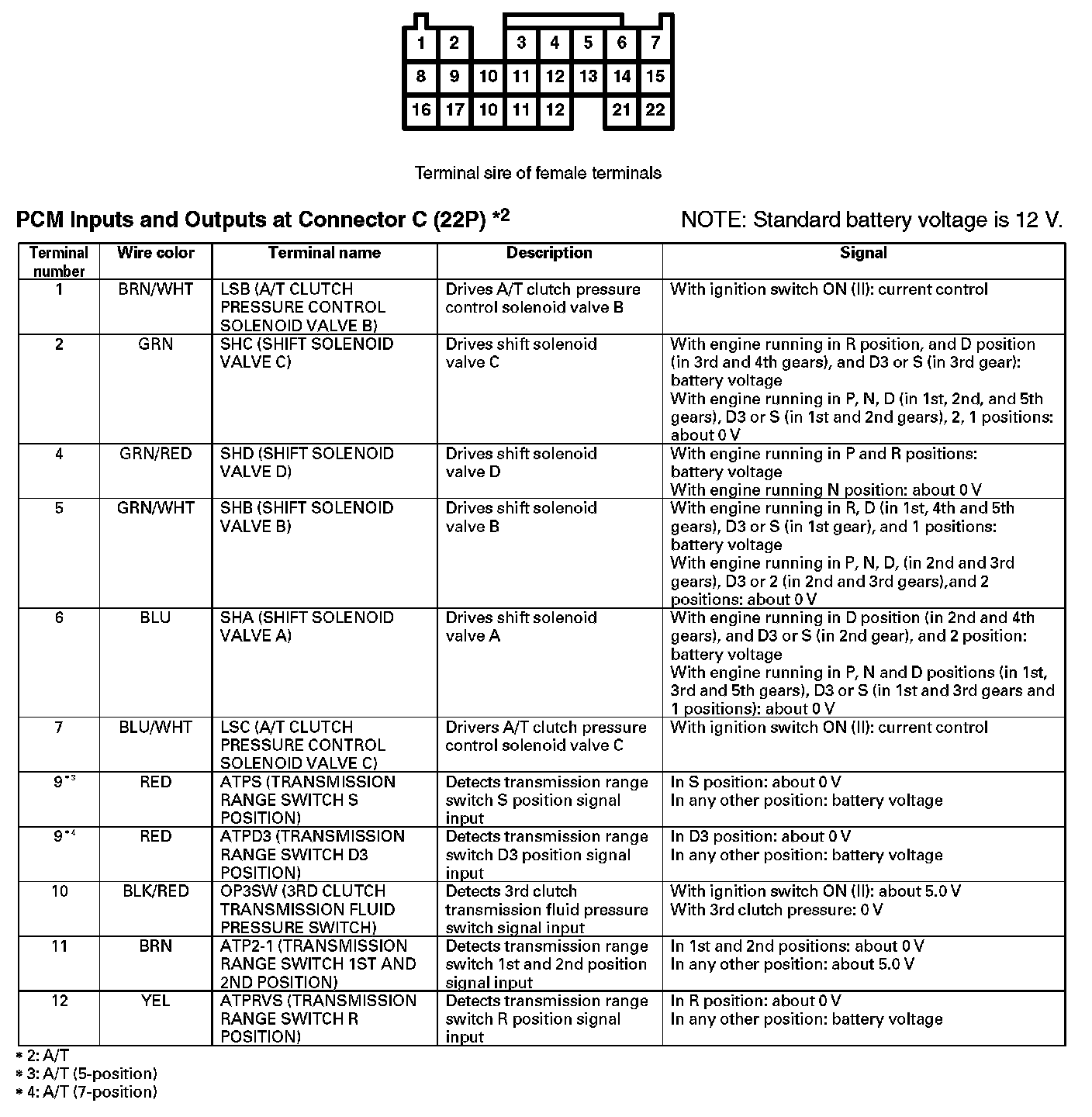 PCM Inputs And Outputs At Connector C (22P) (Part 2):