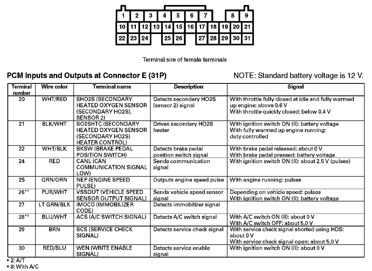 PCM Inputs And Outputs At Connector E (31P) (Part 2):