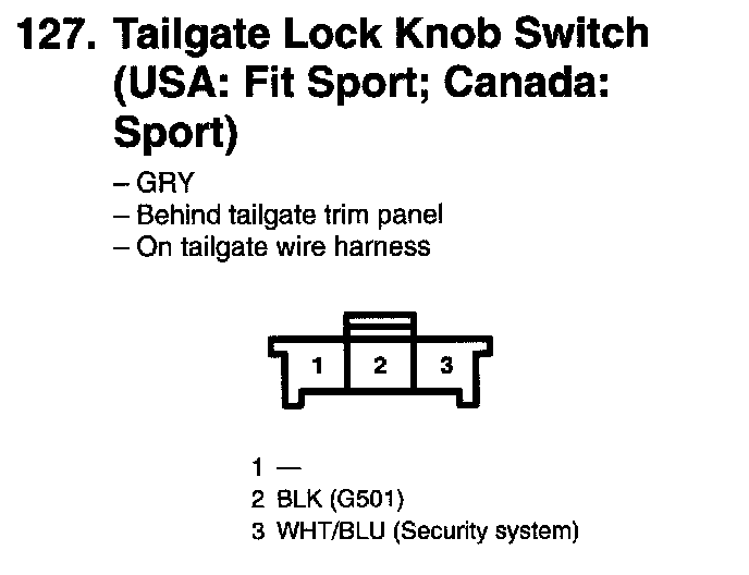 127. Tailgate Lock Knob Switch (USA: Fit Sport; Canada: Sport):