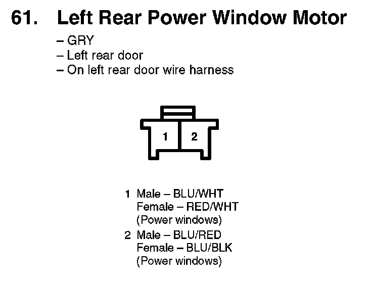 61. Left Rear Power Window Motor: