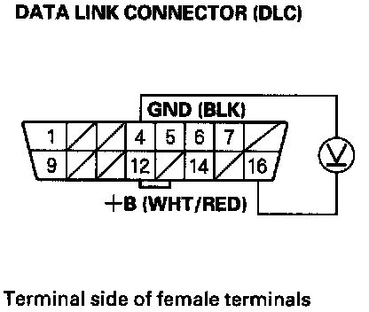 24. Measure voltage between DLC terminal No. 16 and body ground.