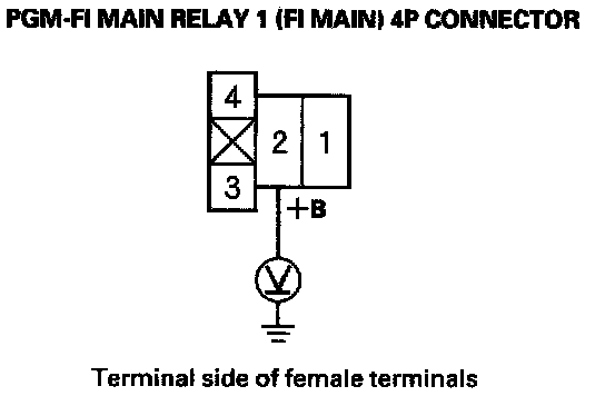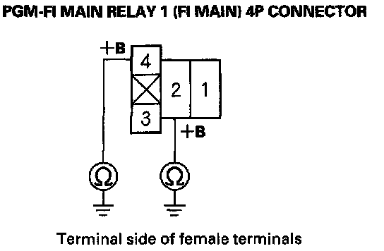 41. Check for continuity between body ground and PGM-FI main relay 1 (FI MAIN) 4P connector terminals No. 2 and No. 4 individually.
