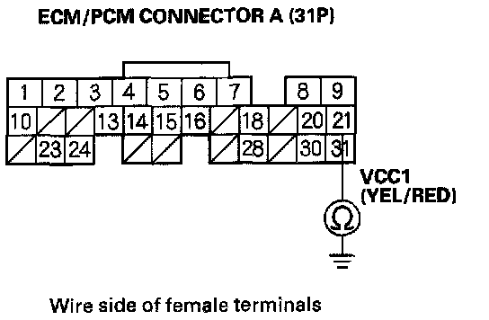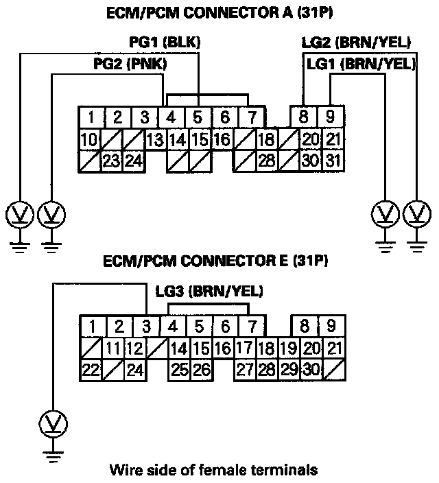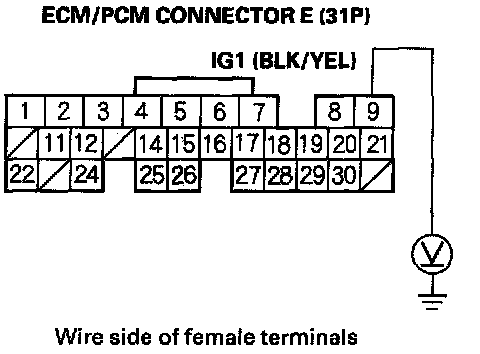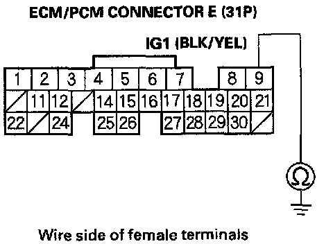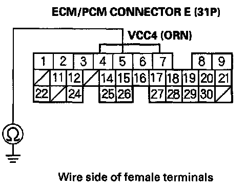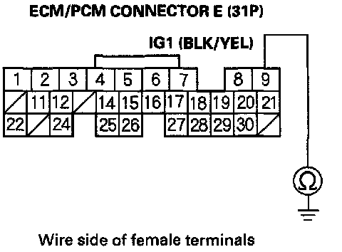 31. Check for continuity between ECM/PCM connector terminal E11 and body ground.