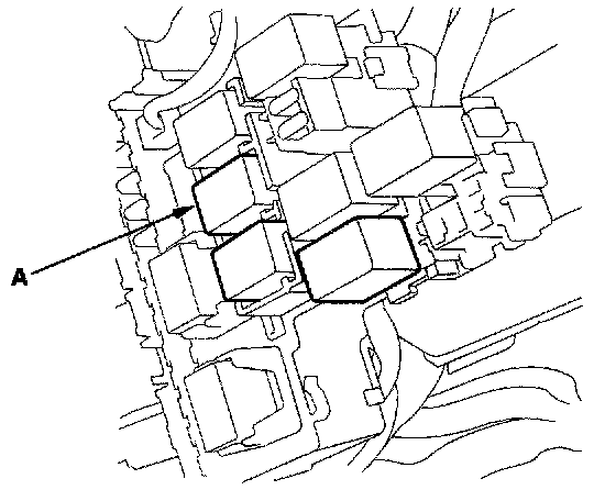 40. Remove PGM-FI main relay 1 (FI MAIN) (A) from the under-dash fuse/relay box.
