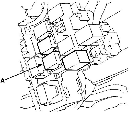 50. Remove PGM-FI main relay 2 (FUEL PUMP) (A) from the under-dash fuse/relay box.
