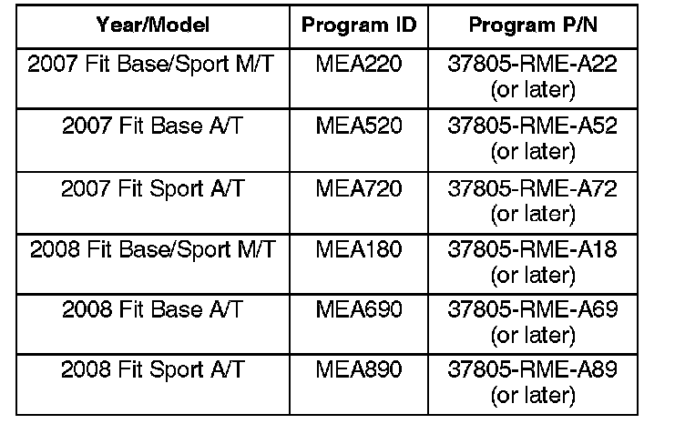 The updated PGM-FI software program IDs and P/Ns are shown below. If the HDS is loaded with the latest software, and it displays No Update Needed during the update, the software for this service bulletin is already installed.