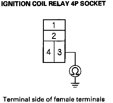 3. Measure the voltage between ignition coil relay 4P socket terminal No.1 and body ground, then terminal No.4 and body ground.