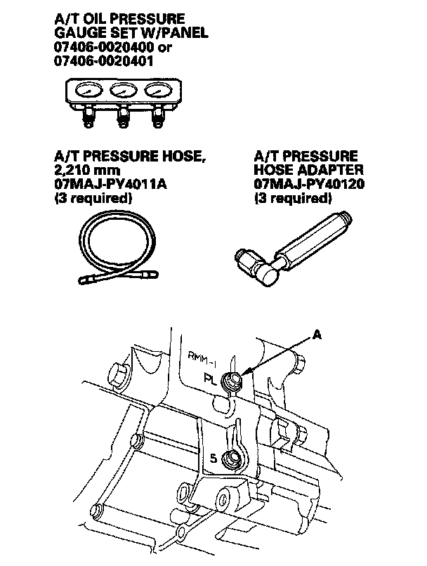 ^ A/T oil pressure gauge set 07406-0020400 or 07406-0020401