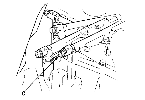 13. Connect the oil pressure gauge to the 2nd clutch pressure inspection port (C).