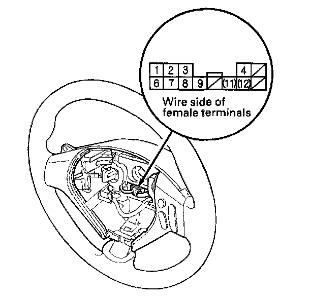 Steering Wheel Downshift (-) Switch TestSRS components are located in this area. Review the SRS component locations, and the precautions and procedures before doing repairs or service.