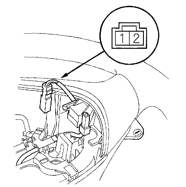 4. Remove the steering wheel downshift (-) switch connector from its holder, end disconnect the connector.