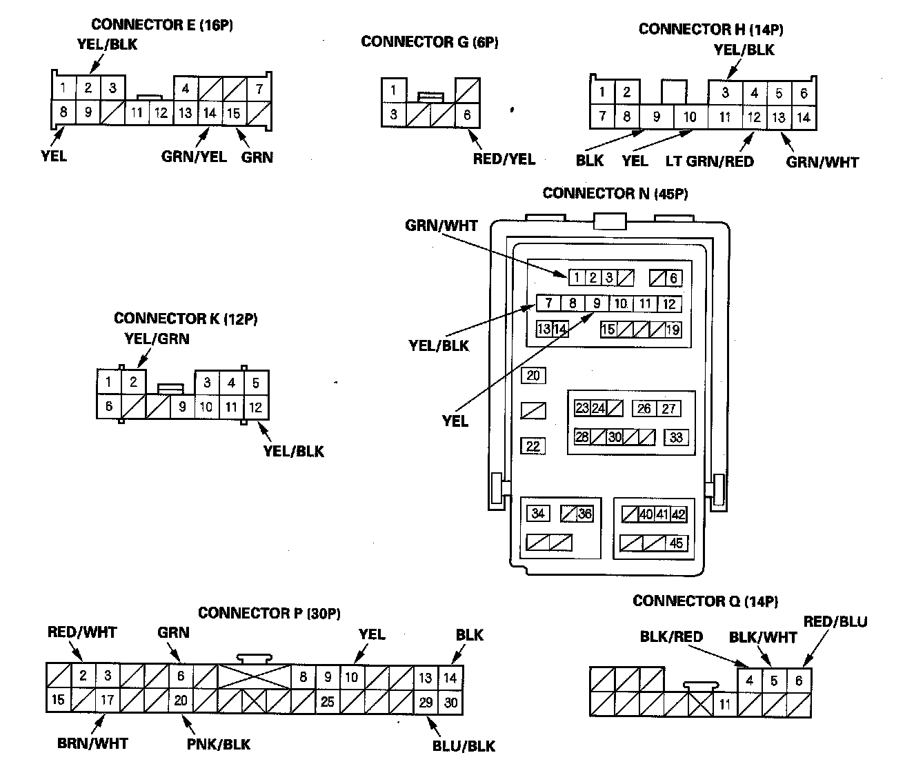 NOTE: All connector views are wire side of female terminals.