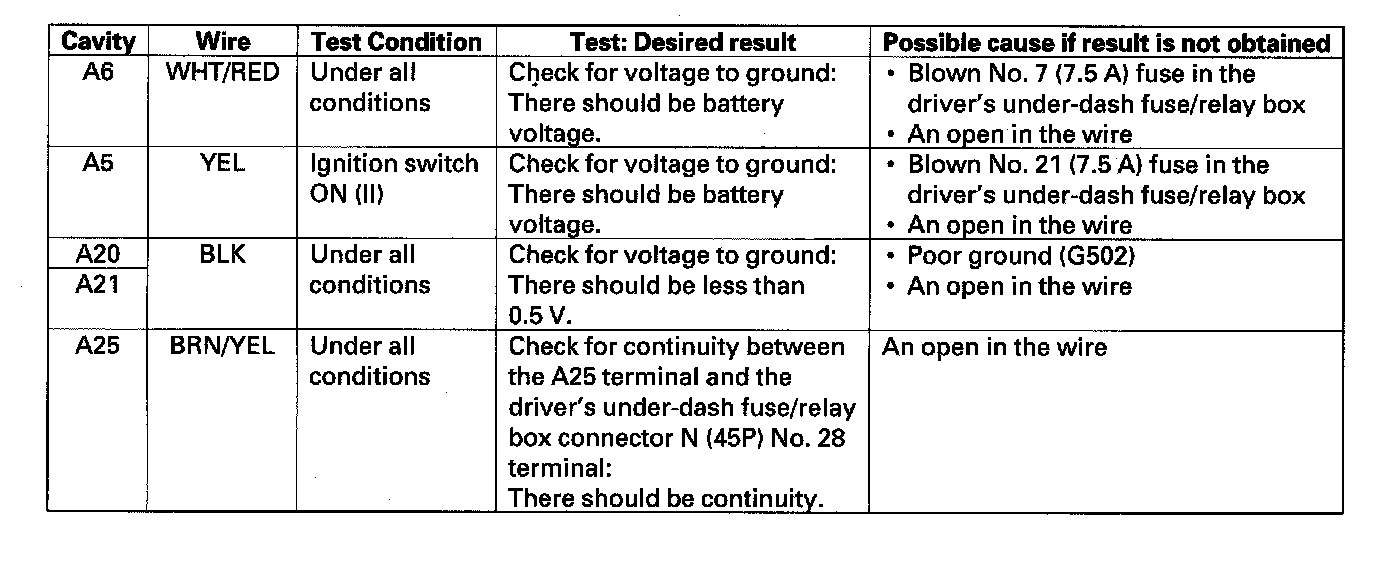 Home >> Honda >> 2007 >> Odyssey V6-3.5L >> Repair and Diagnosis >> Body and Frame >> Body Control Systems >> Testing and Inspection >> Component Tests and General Diagnostics >> Gauge Control Module Input Test