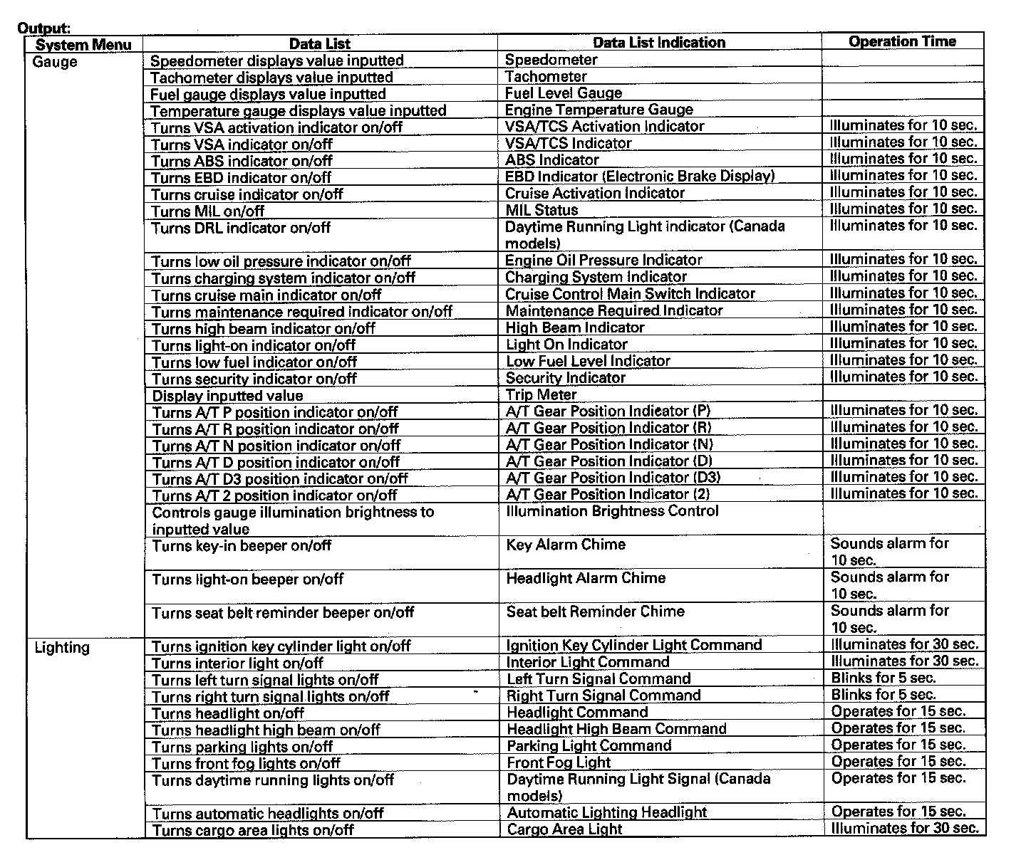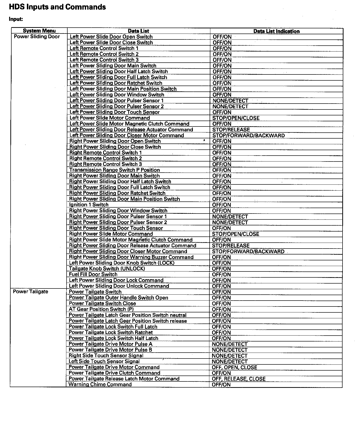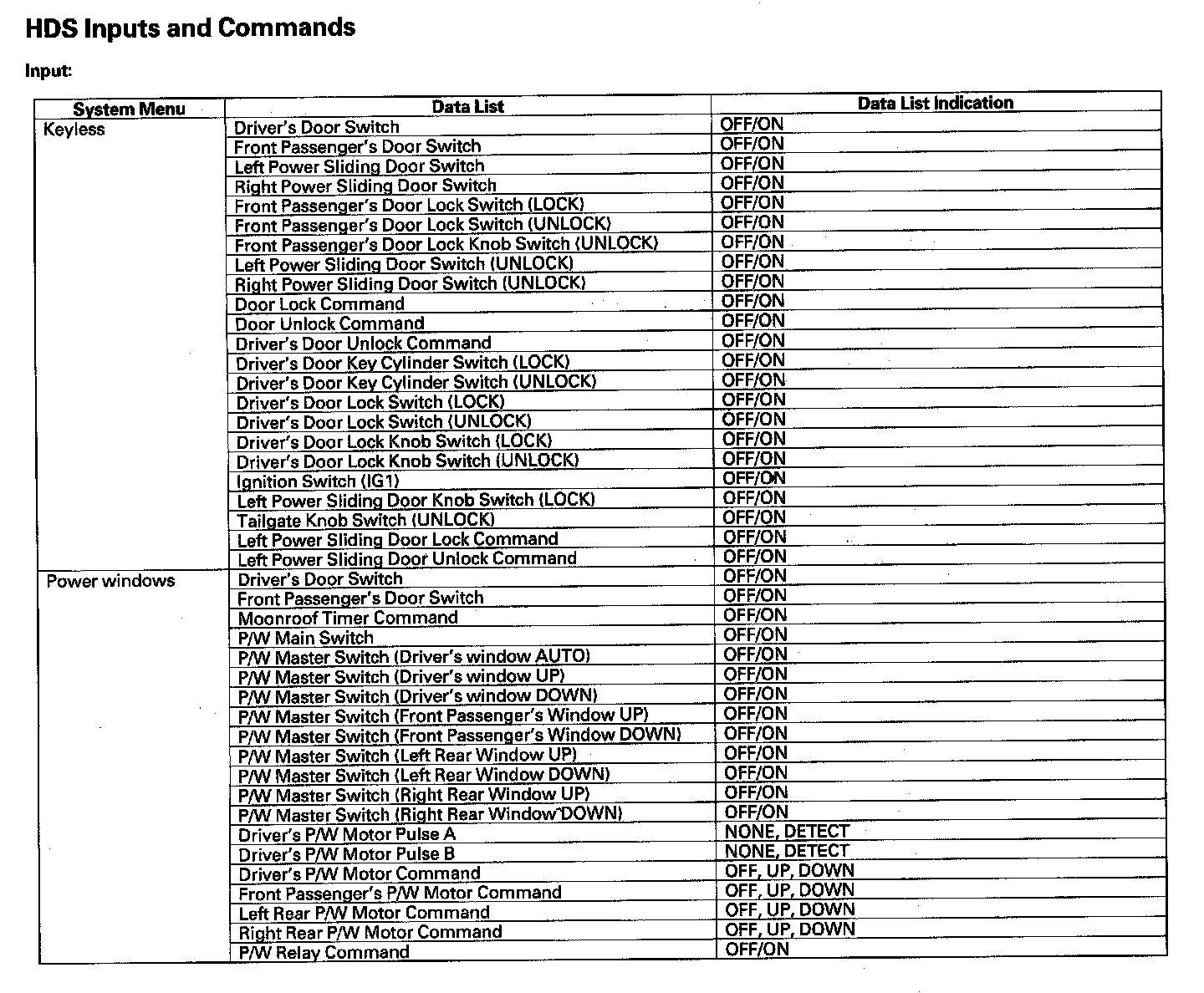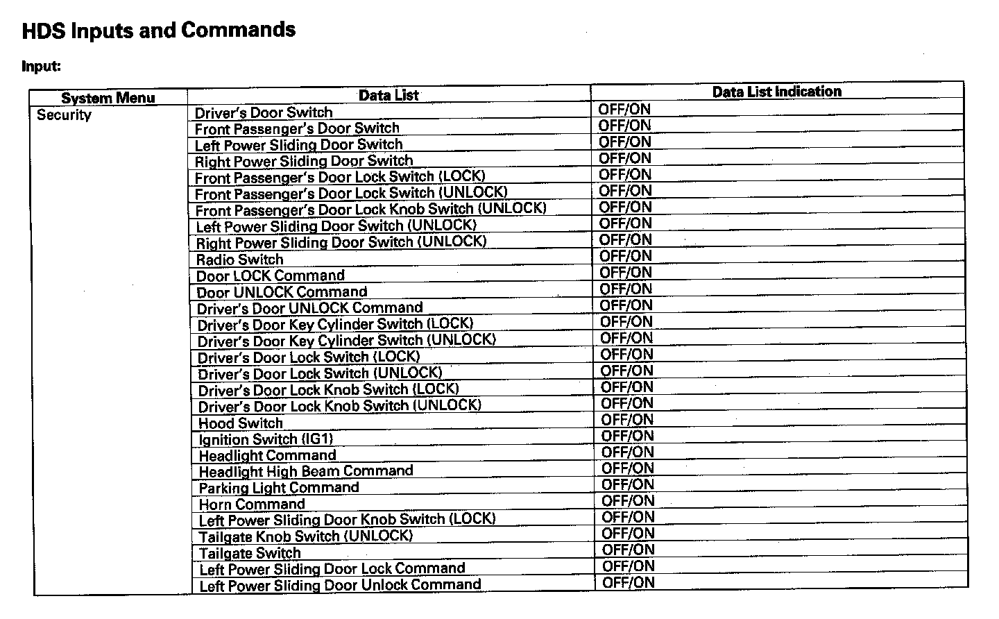 Home >> Honda >> 2007 >> Odyssey V6-3.5L >> Repair and Diagnosis >> Body and Frame >> Body Control Systems >> Testing and Inspection >> Scan Tool Testing and Procedures