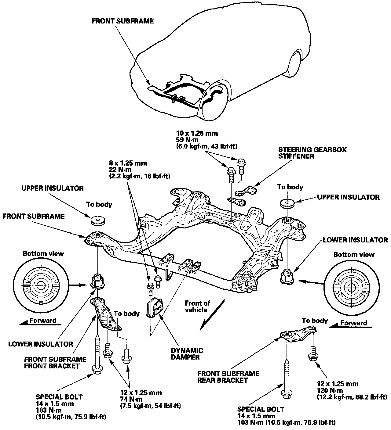 - After removing the subframe mounting bolts, be sure to replace them with new ones.