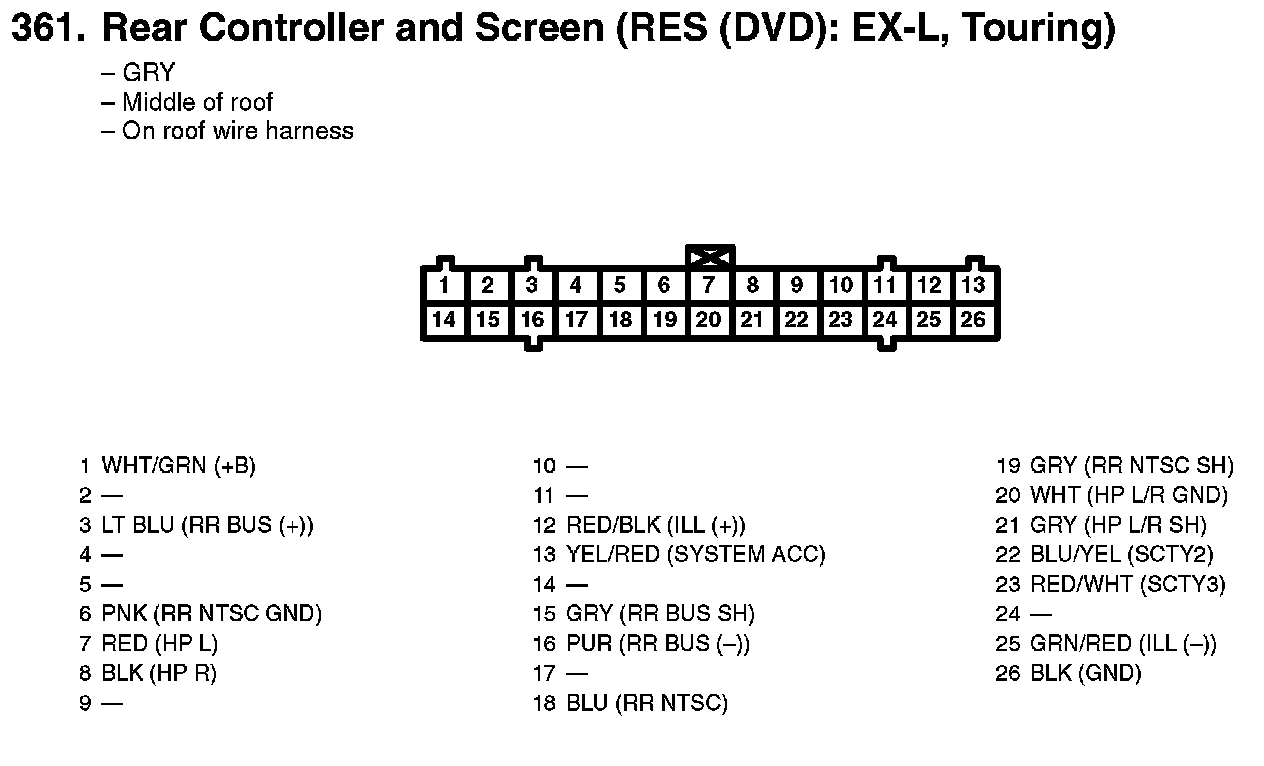 361. Rear Controller And Screen (RES (DVD): EX-L, Touring):