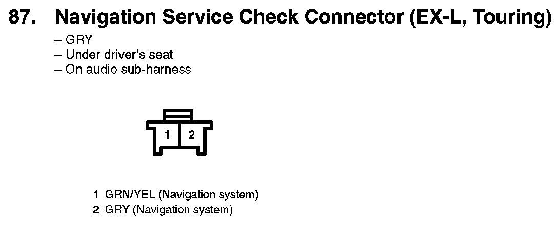 87. Navigation Service Check Connector (EX-L, Touring):