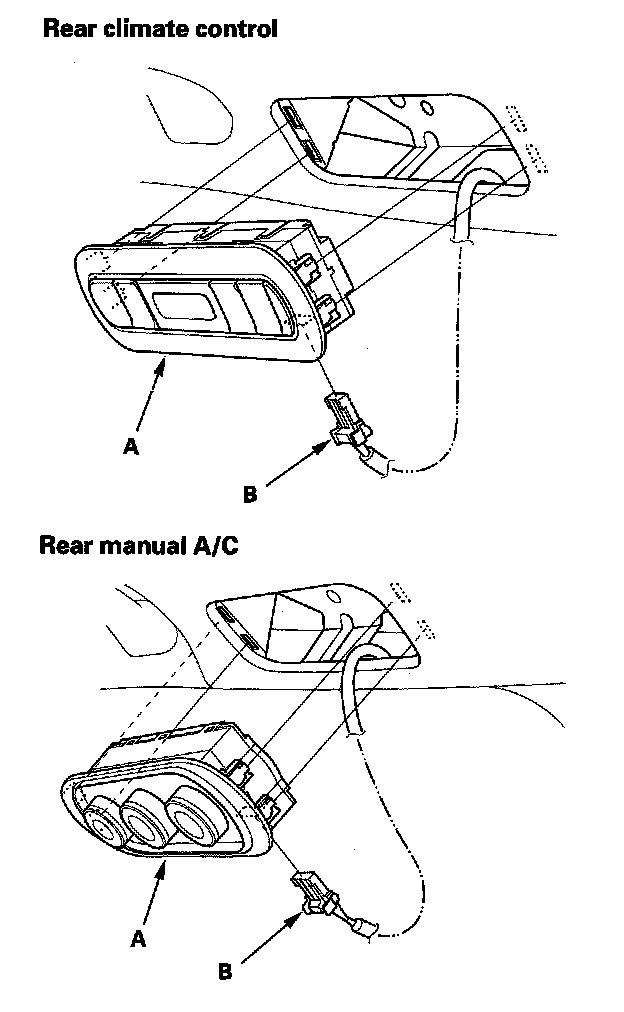 2. Disconnect the connector (B) from the rear control panel.