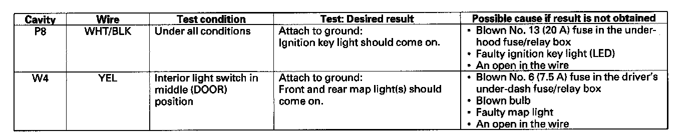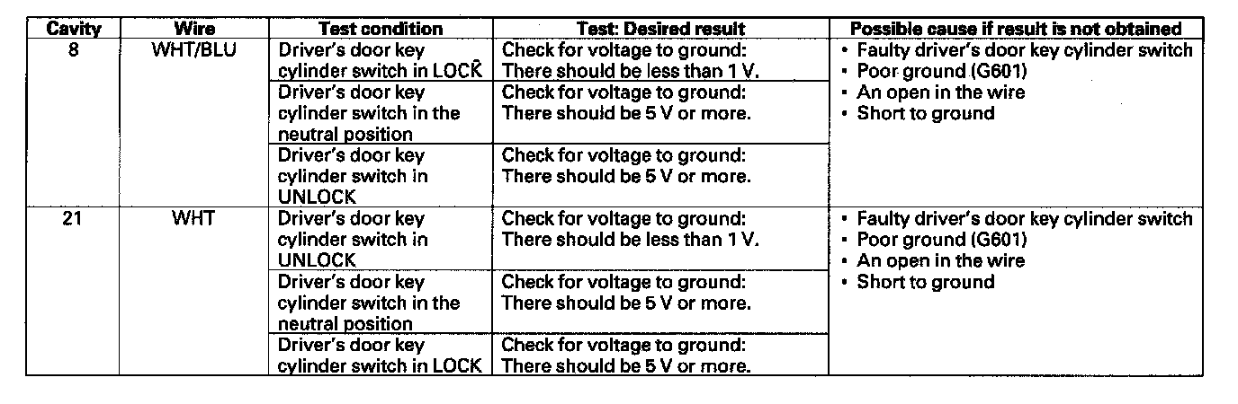 Control Unit Input TestNOTE: Make sure the ignition switch is OFF before disconnecting the driver's under-dash fuse/relay box connectors.