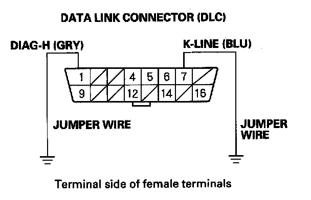18. Connect DLC terminals No. 1 and No. 7 to body ground with a jumper wire.