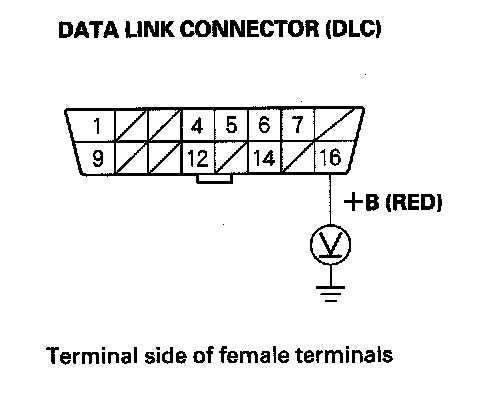 24. Measure voltage between DLC terminal No. 16 and body ground.